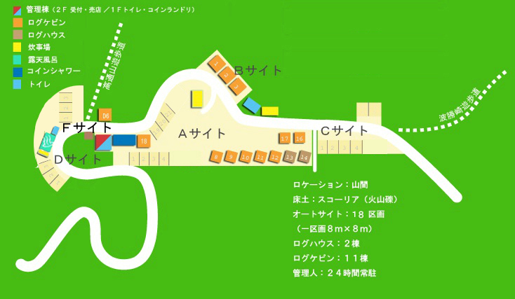 ※ログケビン・ログハウスとも寝具はご用意していませんが, 管理棟にてシュラフ、毛布のレンタル(有料)をしています。